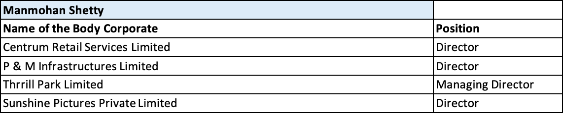 Mr. Manmohan Shetty is the Founder of Adlabs Films Limited, one of the largest entertainment corporations in India. As the founder of Adlabs Films, he has produced many box office hit movies, and movies which have received National Awards, and India's biggest and largest Film processing Laboratory. He is also the founder of Adlabs Entertainment Limited, which has created and built India's biggest theme and Amusement Park, with a water park and 5-star hotel on the Mumbai - Pune Expressway, by the well-known brand "Imagicaa". Currently, he is a director of  Thrrill Park Limited, Cineport Entertainment Private Limited among others. He is one of the most significant people in the Indian Entertainment economy today and is seen as one of the key visionaries in the industry. He was a Council member of the Film & Television Producers Guild of India. He has established India’s first and World’s largest IMAX dome theatre. He has held key positions in media & entertainment-focused government bodies & federations including the post of  Chairman of National Film Development Corporation.